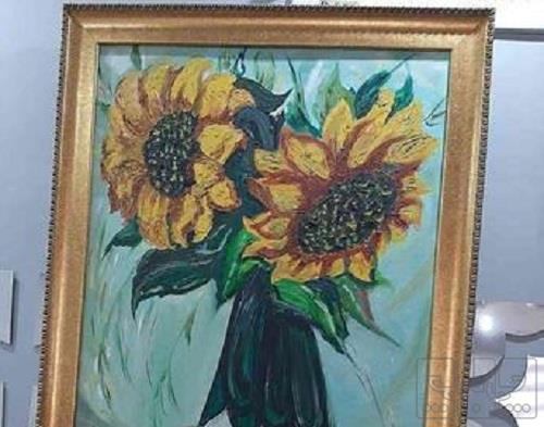 این تابلو با رنگ روغن کار شده یه تابلونقاشی از گل آفتابگردان، ارسال از قزوین