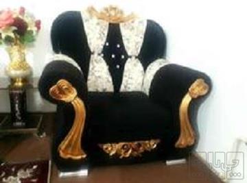 مبل هفت نفره با سه عدد جلو مبلی با روکش مخمر.