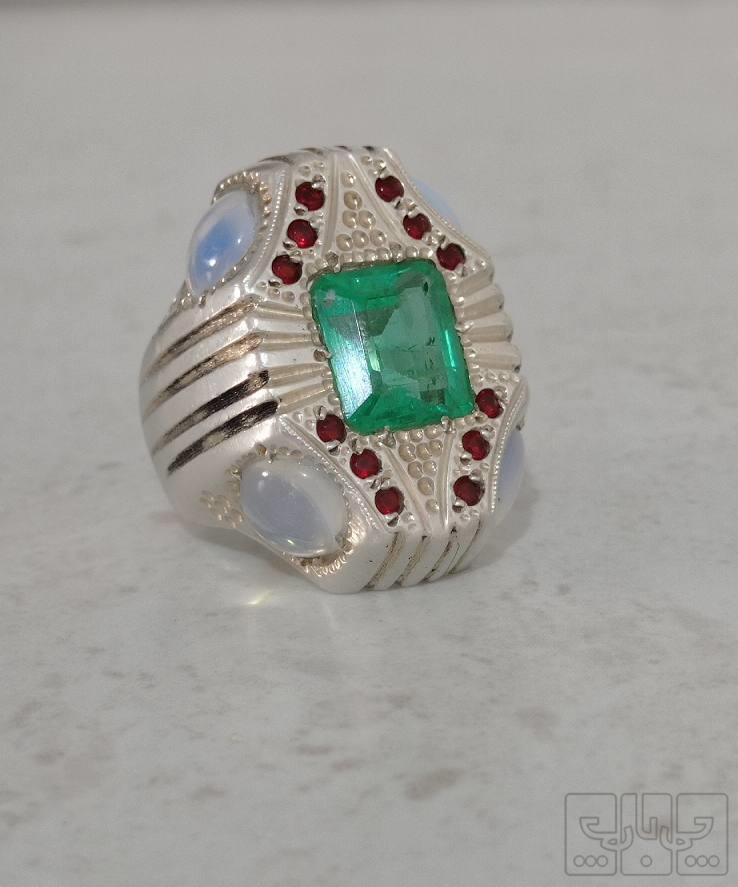 انگشتر کلکسیونی کمیاب زمرد زامبیا تراش بسیار عالیوخاص با نگین های یاقوت و ۴نگین اوپال بینظیر و ۱۲عدد یاقوت آفریقای با رکاب دست ساز بسیار خوش تراش ورکاب کاملا منحصر به فرد هر توضیح دیگه خواستی د در خدمتم تماس بگیرید