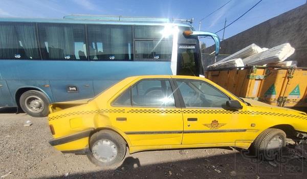 پژو تاکسی مدل 95 دوگانه فابریک عقب و جلو تصادف داره سقف و ستون سالم بدون قوری چهار حلقه لاستیک نو موتور تازه تعمیر