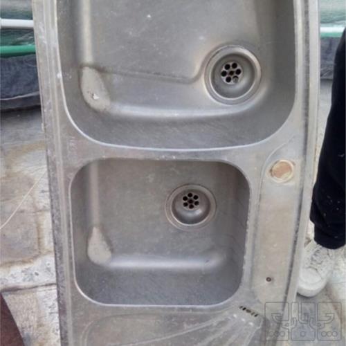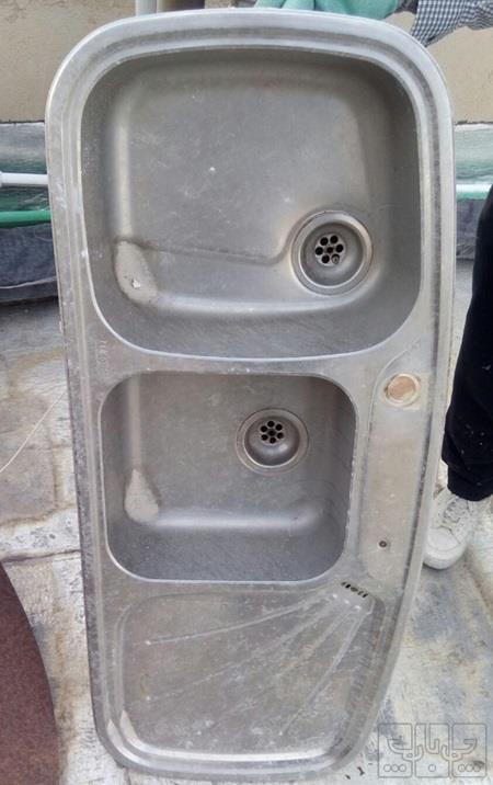 سینک 2 لگنه استیل برند. سالم با سیفون برند البرز