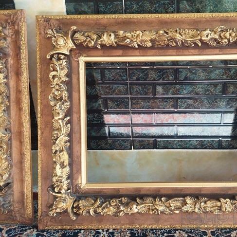 توضیحات قاب تابلو جهت تابلو فرش و نقاشی کاملا سالم و در حد نو جنس چوب با گل های برجسته پلی استری ابعاد داخل ۳۲ در ۴۳ یک جفت