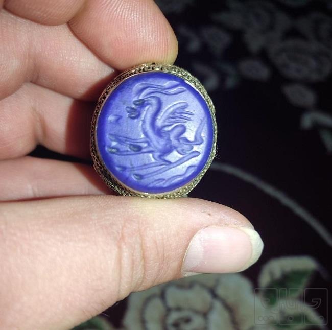 انگشتر مهر قدیمی با نگین سنگ لاجورد با قدمت دو هزار ساله این انگشتر بک انگشتر خاص هست. نقش روی سنگ حکاکی شده اسب یالدار