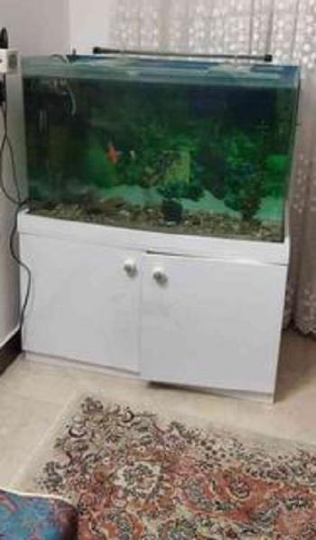 آکواریوم تمیز با تمام وسایل و بسیار زیبا همراه با پایه ام دی اف سفید