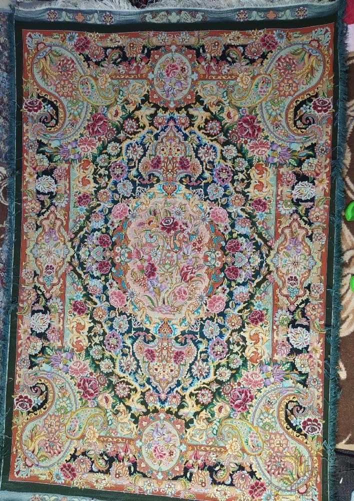 یک تخته قالیچه ۴۰ رج کامل چله نخ گل ابریشم طرح بوته سالاری