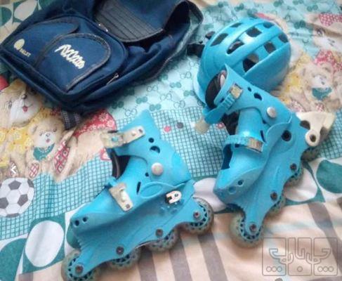 اسکیت بچگانه به رنگ آبی به همراه کلاه و کیف و زانو بند