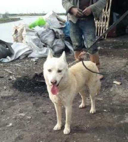 سگ هاسکی نر سفید چشم دورنگ یورش یخی یور دیگه چشم گرگ