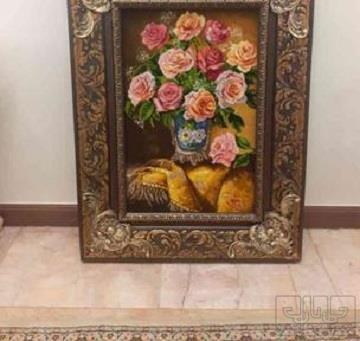 سلام و عرض ادب تابلو فرش گل و گلدان نو هست اندازه خود فرش 35 در 53 هست و اندازه قاب 54 در 72 هست