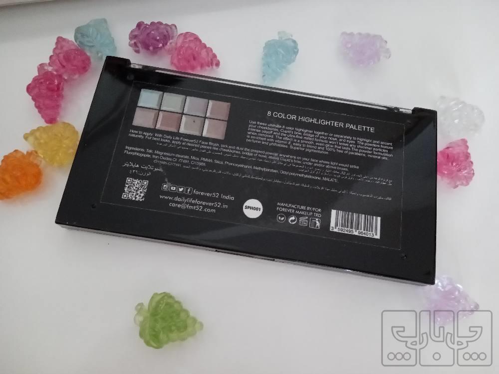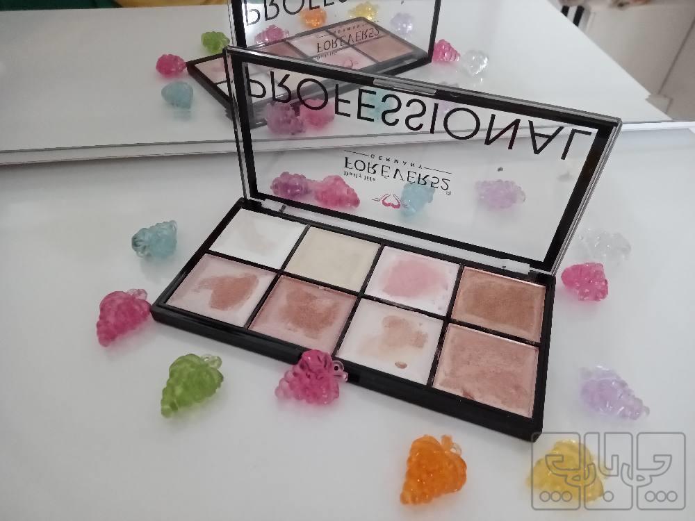 هایلایترمعروف ۸ رنگ فور اور ۵۲ دارای ۸ رنگ نقره ای طلایی سفید صورتی ملیح نسکافه ای و '،مناسب استفاده عروس یا شخصی پیگمنتش عالیه این هایلایتر ۸ رنگو ازفروشگاه شیک شاپ خرم اباد ۶۸۰ خریدم و فقط دوبار از روش تست کردم و چون ی هایلایتر ۳ ملیونی خریدم اینو لازم ندارم