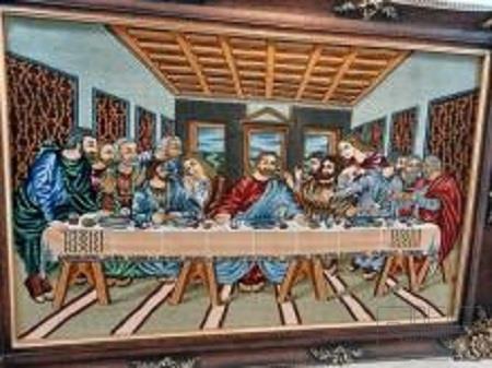 تابلو فرش دستباف تبریز شام آخر سایز بزرگ اندازه بدون قاب 100/150 اندازه با قاب 130/180 چله ابریشم صورتها ابریشم برجسته