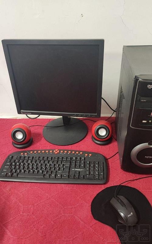 کیس و مانیتور ۱۷ اینچ لنوو و کیبورد و موس و اسپیکر و دانگل وای فای مشخصات کامپیوتر رم ۶ گرافیک یک گیگ ۱۲۸ بیت هارد 1 ترابایت ویندوز 8 اصلا استفاده ای هم نشده خیلی تمیز و سالمه