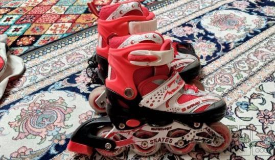 اسکیت ژله ای چراغ دارتاسایز33 اسکیت کاملاسالم سالم چرخ هاژله ای چراغ دار مارک هستن تغییرسایزتا33دارای زانوبندمچ بندوآرنج بند