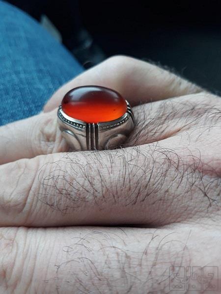 انگشتر کهنه با سنگ استثنایی با طبع شیشه ای و شن دار. سایز ۶۳