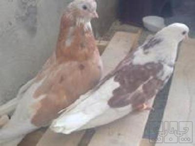 کبوتر جفت شازده زیبا نوک قنار کشیده نر شازده زرد بسیار زیبا وماده پشتار یا شازده هر دو کشیده تزءینی