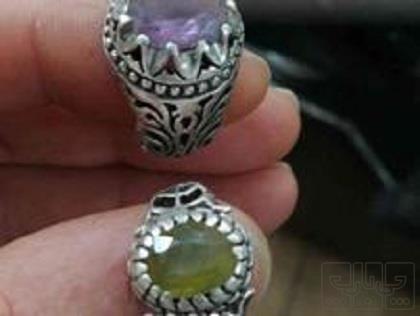 آماتیس معدنی رکاب نقره الماس تراش به وزن تقریبی 15گرم.. یاقوت یا عقیق سبز الماس تراش رکاب نقره به وزن تقریبی 6 گرم