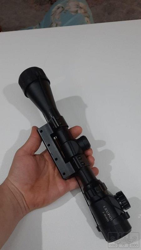 باسلام و درود دوربین تفنگ بادی برند لئوپولد با جعبه و کد رهگیری کاملا سالم بزرگنمایی تا ۹ برابر دارای چراغ سبز رتیکل حک کاملا سالم مناسب خفیف،فنری معمولی،pcp و غیره
