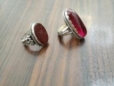 دو عدد انگشتر نقره ناب ، قدیمی و دست ساز یکی یاقوت سُرخ نگین دُرشت، دیگری عقیق خطی