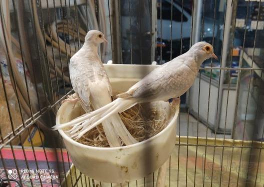 یک جفت قمری الماسی یا همون قمری چینی رنگ سیلور روشن خاص رام و قفسی کارداده هستن یکبار جوجه دادن سن حدودا یکساله و جوان تغذیه بهترین دان و ویتامین ها