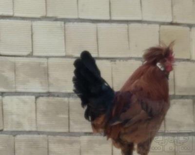 خروس کاکلی پرپا زیبا با دو خروس سفید
