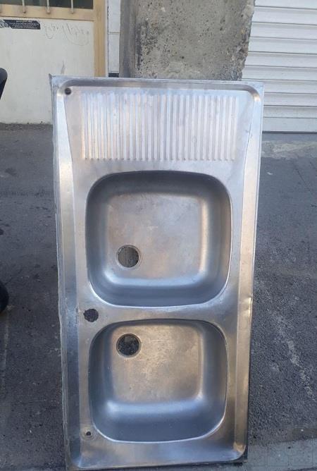 سینگ ظرفشویی استیل دو لگنه عرض ۵۰ به طول یک متر کارکرده و سالم آدرس خیابان راهزان۱۵متری سعدی روبروی نسترن ۱۲