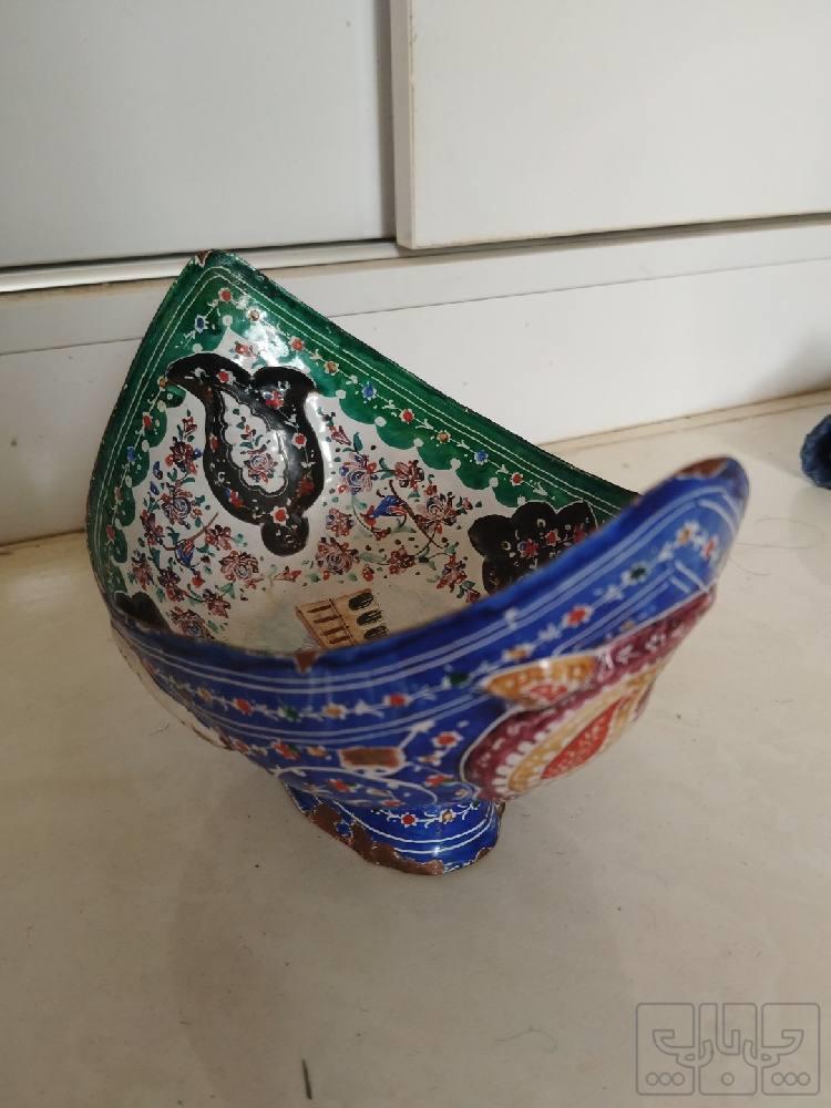 ظرف کشکول .میناکاری روی مس.قدیمی
