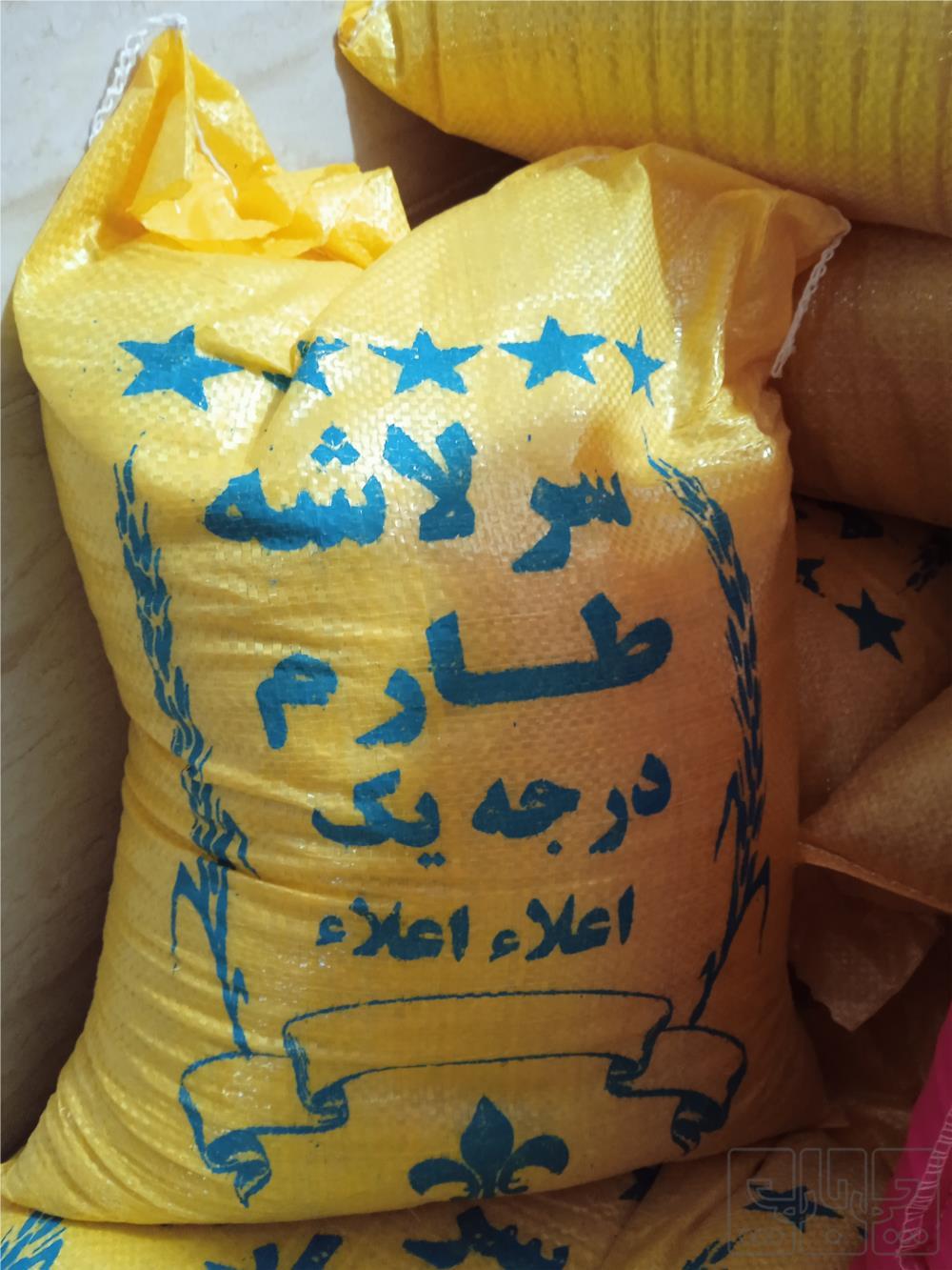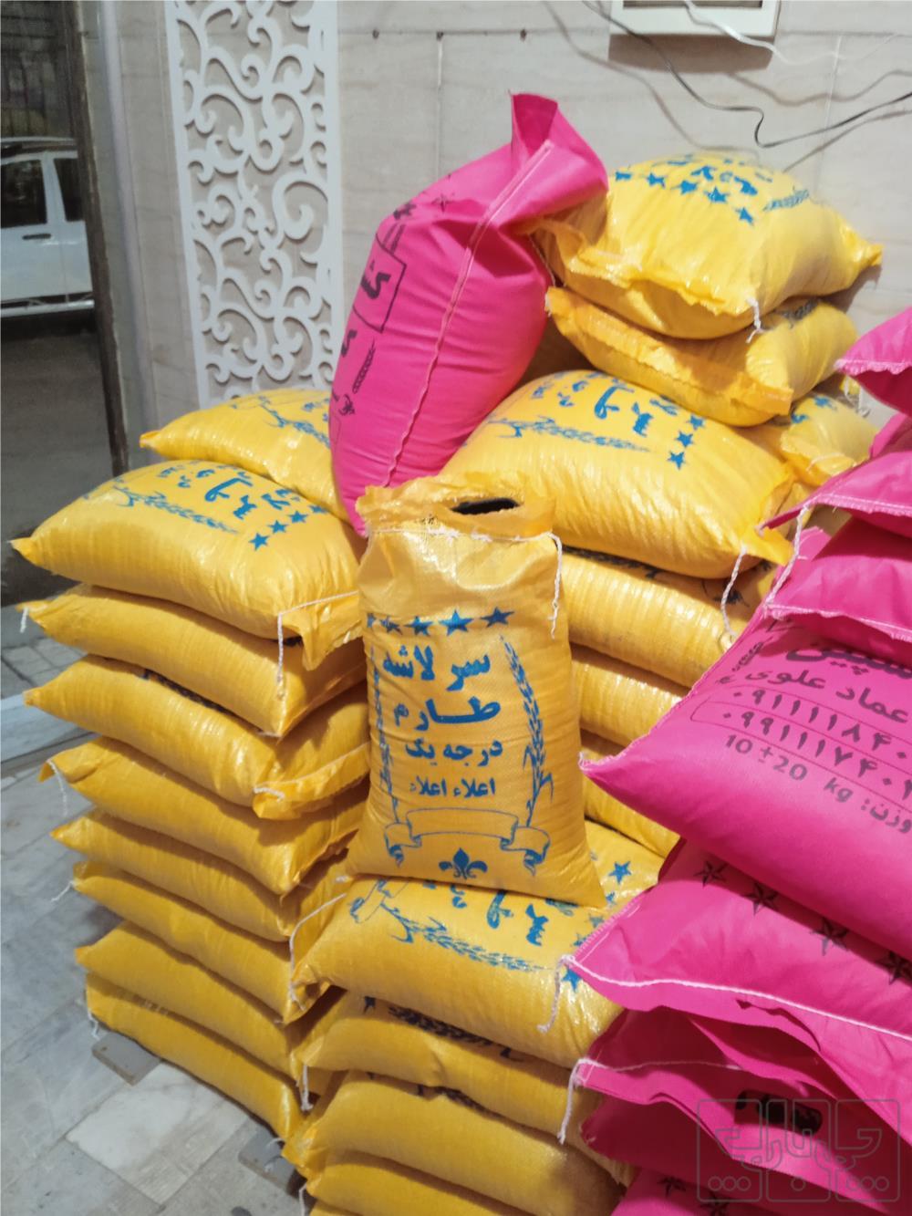 برنج سرلاشه و سالم طارم هاشمی درجه یک پارسالی دوبارکشت بدلیل حجم بالای برنج بخشی از آنرا برای امر خیر گذاشت