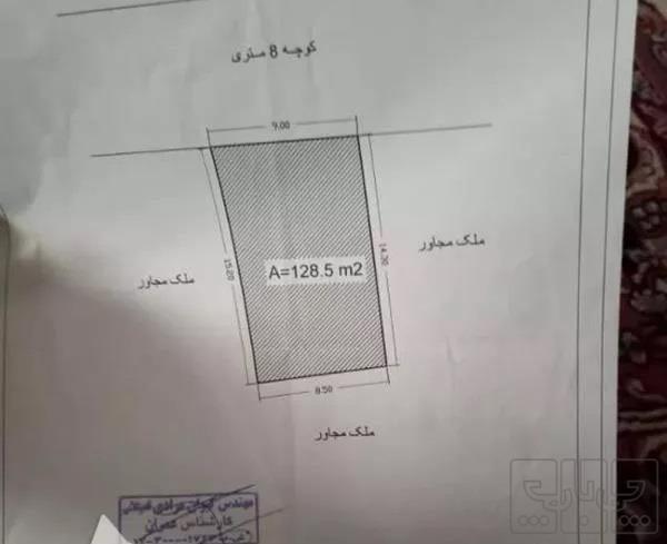 زمین به متراژ ۱۲۸/۵ با بر ۹ متر جای دنج و عالی