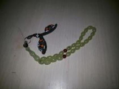 تسبیح دسته کلیدی که یک جفت دمپایی منجوق بافی شده بهش زدم،واسه آویز خیلی رخ داره