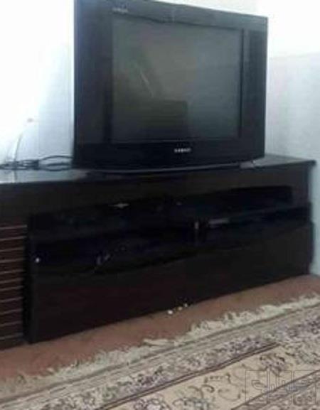 تلویزیون 29اینچ صنام کاملا سالم با میزش یه تیکه از قاب بالای تلویزیون شکسته که با چسب چسباندم