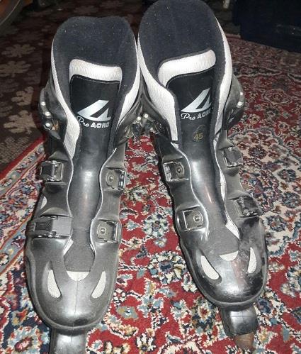 اسکیت pro acro سایز ۴۰_۴۵... ۲ کفی با جنس مختلف داره که باهاشون سایز رو تعین میکنید...خیلی اسکیت خوب و راحتیه... لاستیک ها هم عالین...فقط باید برای هر کفش 3تا سگک کمربندی بندازید،که قیمتی نداره... هم چفت های با کیفیتی داره هم بدنه وهم لایه داخلی بسیار راحت و نرمه...
