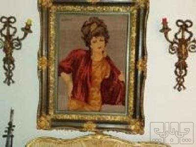 تابلو فرش ابریشم دستباف آنتیک قاجاریه به ابعاد 80 در 110 با قدمت بالای 100 سال، بسیار کمیاب و استثنایی، بی عیب و نقص ترین،