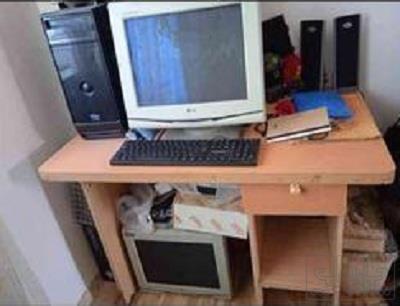 کامپیوتر با تمامی امکاناتش میز و کیس و موس و صفحه کلید به همراه یک مانیتور اضافه به دلیل جاگرفتن و استفاده نشدن رد میکنم
