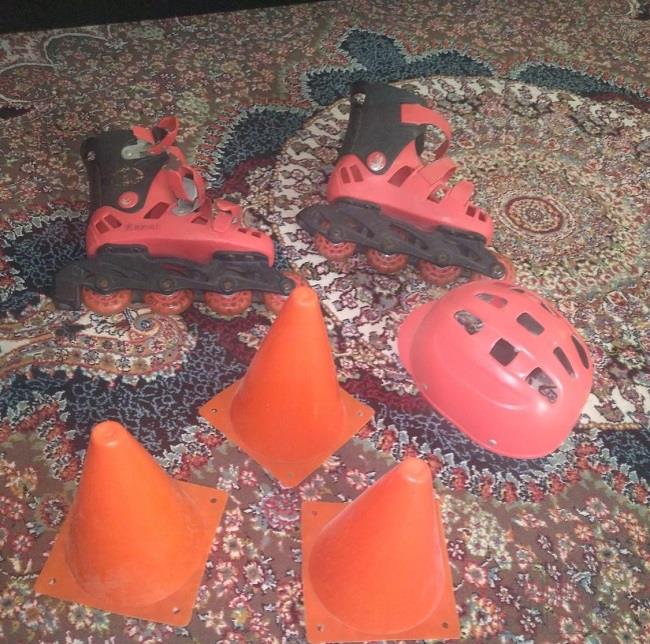 اسکیت چرخ دار همراه با کلاه ایمنی وکله قندی