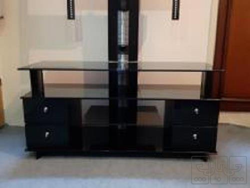 کاملا سالم و بدون شکستگی،دارای4کشوی،دارای تنظیم تلویزیون و بالا و پایین بردن و دو تا پایه داره که برای تنظیم اینچ تلویزیون هست(مناسب اکثر اینچ ها) واقعا درحد نو هست