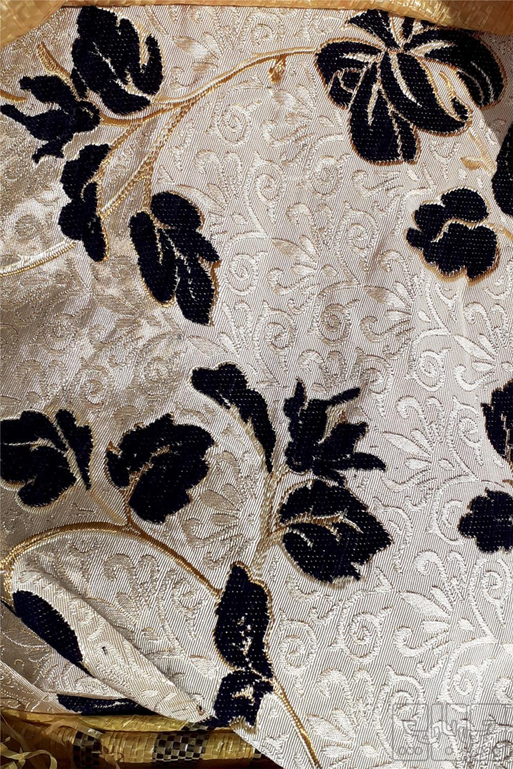 پارچه مبلی ضخیم و گلدار دو رنگ کرم و سرمه ای از هر رنگ حدود چهل متر