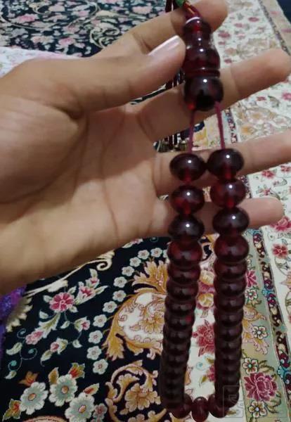 با سلام تسبیح سندلوس33عددی دانه درشت رنگ شرابی بدون خط و خش و شکستگی هست