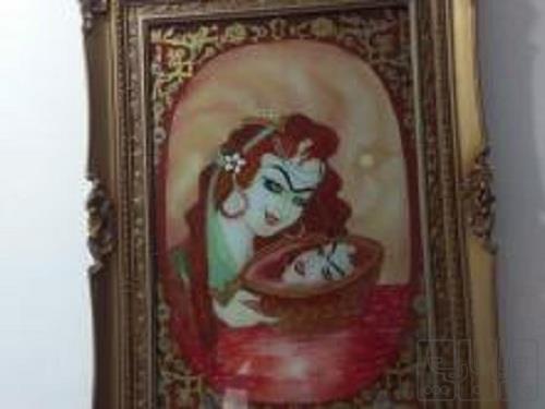 تابلو نقاشی ، پشت شیشه قاجار با قاب سلطنتی