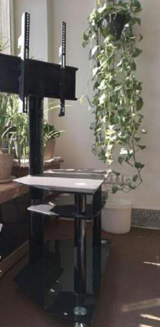 با سلام میز تلویزیون. عالی با قابلیت سر چرخشی بدون هیچ خط و خشی شیشه ای هست سه طبقه دارد