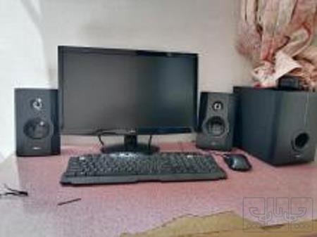 مانیتور 20 اینج led بلندگو دار سی پی یو corei 3 3240 4 هسته ای رم 8 گیگ DDR3 1600 هارد 500 گیگ گرافیک 1 گیگ اینتل کیبورد و موس نو همراه با میز بلندگو 3 تیکه NECo