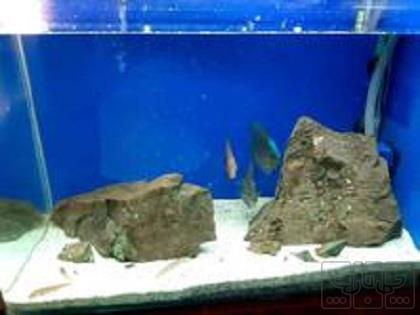 اکواریوم 70در60در35 شیشه خم. سه عدد دیسکس6 اینچ یجفت کتخوار پوزه خرگوشی لوچ هواشناس . ابگرم کن پمپ هوا دستگاه تاپ فیلتر قوی 20کیلو شن دو مدل سنگ نمایشی