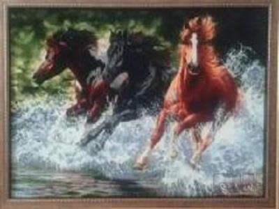 تابلو فرش دستباف نخ مرینوس وابریشم 500 گره 80 رنگ 375 رج ابعاد 70در 52