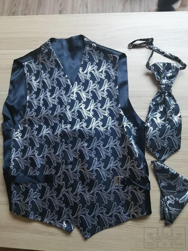 جلیقه دامادی به همراه کروات و دستمال جیب کاملا نو