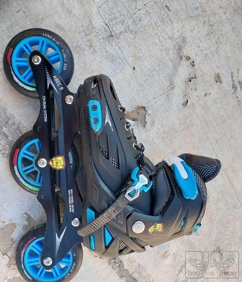 باسلام اسکیت کاملا نو اصلا استفاده نشده در خد دو الی ۳ بار شاید کلا استفاده شده چند تا خط و خش جزیی داره که اصلا تو چشم نیست