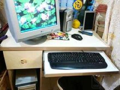 رایانه خانگی اسپیکر دو بلندگو کیس کیبورد مانیتور موس همگی سالم در حال استفاده با میز و صندلی نو