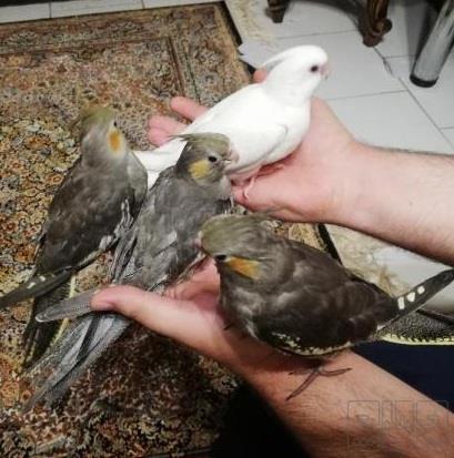 3 عدد جوجه عروس خاکستری (سینامون) 2ماهه 2تا نر یکی ماده 1 عدد جوجه عروس سفید چشم شرابی (آلبینو) 55 روزه نر دو سر خالص عروسها کاملا رام و دستی هستن اسم دارن و با اسمشون بسمت صدا میان و از دست غذا میخورن آماده برای سخنگو شدن. گاهی در طول روز برای بازی و جلب توجه ریزه خوانی میکنن که اگه اون زمان باهاشون بازی کنید کاملا خودشون رو لوس میکنن. بسیار شاداب و سالم با بدن پر و پرهای سالم و کشیده. یک جفت طوطی لیلیان مولد 16 ماهه با سابقه 2 بار تخم گذاری (5تا تخم مرتبه اول 6 تا تخم مرتبه دوم) درحال استراحت زمان مناسب جهت جابجایی